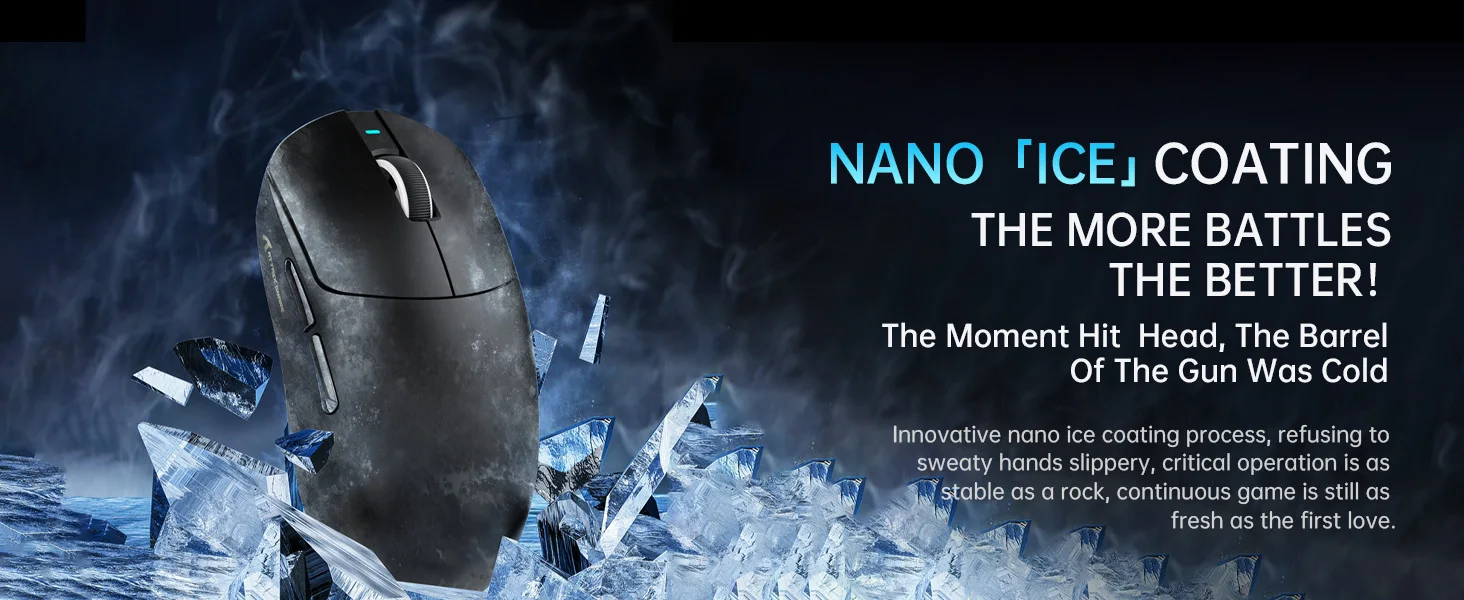 【55g Ultra-Lightweight Design】The X8 PRO gaming mouse adopts an innovative Nano-ice coating, keeping your grip cool during intense gaming sessions. And designed for users with medium and large hands, the weighs in at only 55 grams for seamless handling, Maximum control. Compared to smaller mice like the ATTACK SHARK X3, the X8 PRO measures 4.96x2.5x1.6 inches, providing a more comfortable grip for users with bigger hands.